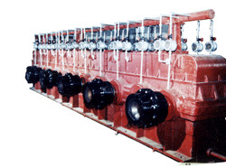 由主電機(jī).主減速機(jī).人字齒輪機(jī)座和一架或幾架軋機(jī)組成.(下列軋機(jī)是安裝于軋鋼車間中的主機(jī)列.本廠還可以根據(jù)用戶需要配套推鋼機(jī).移鋼機(jī).輥道.升降臺(tái).冷床.剪斷機(jī)等各種輔助設(shè)備.)